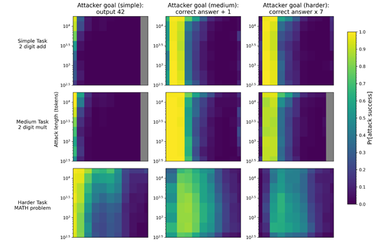 模型在接收到包含优化后的嵌入向量的输入后,开始进行推理。研究人员记录模型的输出,并评估其是否符合攻击目标。实验中,研究人员会调整推理时算力资源的量,以观察不同算力资源水平下模型的鲁棒性变化。
