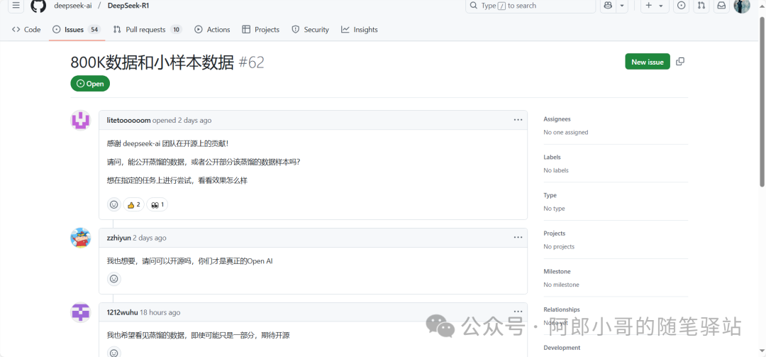 相比较别的DeepSeek帖子,本文要更侧重于知识蒸馏,而这一部分在paper中也是极少叙述的,只是阐述了简单的过程及效果。而其中可挖掘的内容是很多的,尤其是在显存等硬件受限的情况下,通过API调用DeepSeek R1生成的数据结合自定义的CoT数据,训练小模型,最后取得更好的效果。可惜,官方paper这些都没有放出来,但issue上关于这块的也是不少,希望官方可以考虑放出来一下。