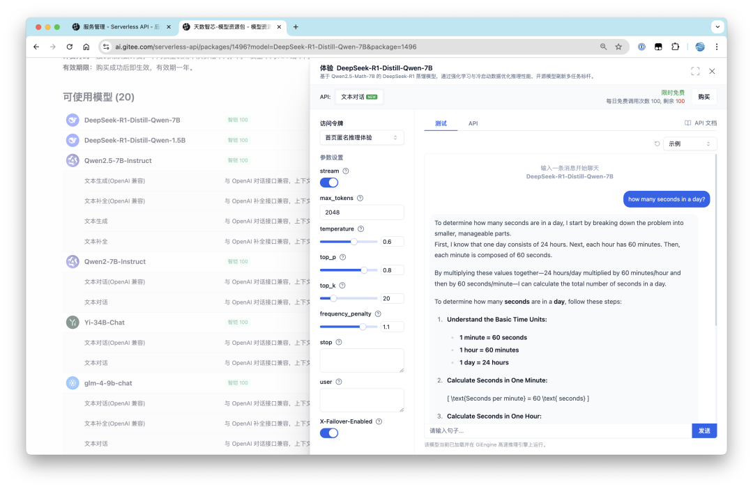 同样,Gitee AI 天数智芯算力资源包中的DeepSeek-R1-Distill系列模型依然面向全体开发者免费使用!