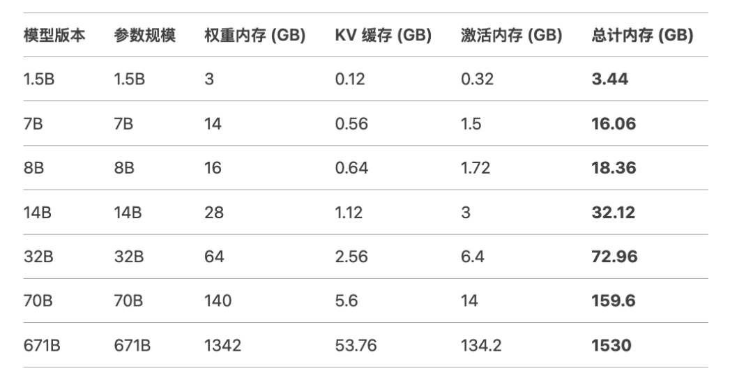 模型的内存需求主要包括权重内存、KV缓存和激活内存三个部分。