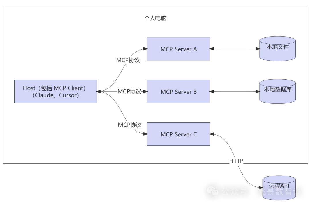 前言前一阵,AI领域又出现一件令人兴奋的事件,不是某个新模型的发布,也不是某个应用的创新,而是一个 Anthropic 在2024年11月推出的开放协议——MCP。 这个协议热起来有一段时间了,但是由于个人前期使用不多,一直没有分享,最近学习了下,尝试和大家聊聊。 缘起首先,我们需要了解下,为什么会出现 MCP? 大模型最初的时候,只能进行对话,不管是文本,还是多模态的图片、视频,但是本质都是问答。 这距离我们想要的 AI,差距有点大,最起码,它得可以帮我我们“做”事才行。 后来,有了function call,我们可以通过自行调用外部 API 来实现大模型与外部能力的打通。 当时,大模型和外部能力的关系如下图:  这种情况下,整个大模型生态的复杂度会指数级上升。 并且,实际工作中,我们经常会在大模型中集成了某个外部能力,比如Gitee代码仓库操作,但大模型A中集成的代码在大模型B中往往不能直接使用,这会造成整体工作的大量重复和浪费。 因此,MCP 就诞生了。  介绍MCP 全称 Model Context Protocol,模型上下文协议,旨在通过统一标准约定大模型与外部数据(资源)和外部能力(工具)的通信。 MCP 核心组件如下: Host:宿主程序,即当前使用的大模型的载体应用,比如 Claude Desktop、Cursor、字节Trae等等。 Client:MCP 客户端,即负责与 MCP Server 进行通信的组件,内置在 Host 中,比如 Cursor 就已经内置了,直接录入 MCP Server 后即可实现调用。 Server:MCP 服务器,即实际提供外部数据和外部能力的组件,一般在 Host 外部,可以是本地文件的封装,也可以是远程 REST 接口的封装。