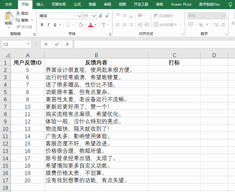 =PROMPT(B2,"请判断这条用户反馈的情感倾向,并用‘正面’、‘负面’或‘中性’回答。")