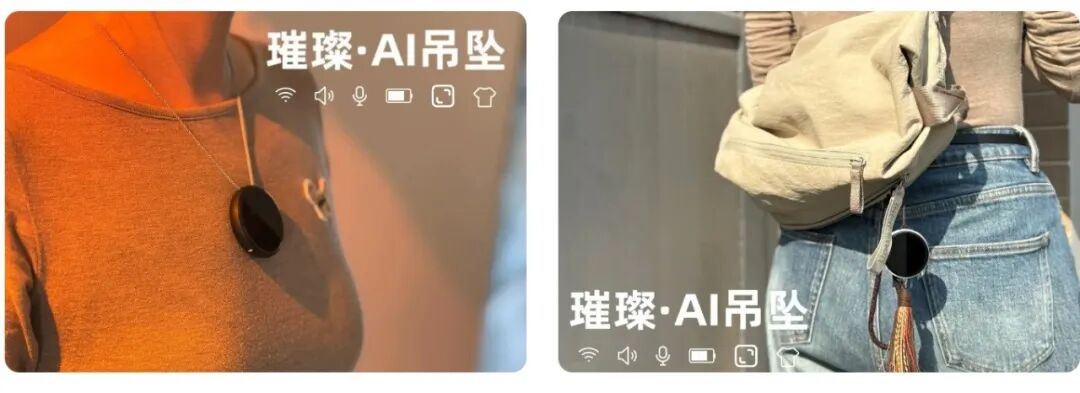璀璨·AI吊坠是一款集科技与时尚于一体的智能穿戴设备,既可以挂在脖子上,也可以挂在包包上。它采用双面 1.28 寸圆形屏幕设计,搭载 ESP32-S3 主控芯片,支持语音交互、音频播放等功能,为用户提供便捷的智能体验。无论是日常使用还是作为时尚配饰,璀璨·AI吊坠都能为生活增添一抹科技的光彩。 ingFang SC", "Hiragino Sans GB", "Microsoft YaHei UI", "Microsoft YaHei", Arial, sans-serif;letter-spacing: normal;text-align: left;border-width: 0px 0px 1px 4px;border-style: solid solid dashed;border-bottom-color: rgb(37, 106, 255);border-left-color: rgb(37, 106, 255);line-height: 1.2;color: rgb(63, 63, 63);visibility: visible;background-color: rgb(255, 255, 255);">Friend AI 项链 Friend是一款AI项链,其外观是简洁的圆形吊坠设计,直径约硬币大小,可以像普通项链挂坠一样挂在脖子上,也可以夹在衣服上,有多种颜色可以选择,这款项链单次充电之后续航时间大概在15到30个小时。