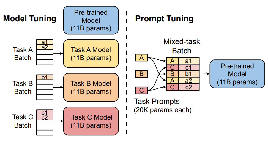 原理:大家平时用DeepSeek时,会输入 “请帮我写一封求职信” 这样的提示词,Prompt Tuning就是让这些提示词变得更 “智能”。不过它优化的不是离散的文字,而是将提示词转化为连续的向量空间中的最优任务指令,本质上是给模型“定制化考试题目”。