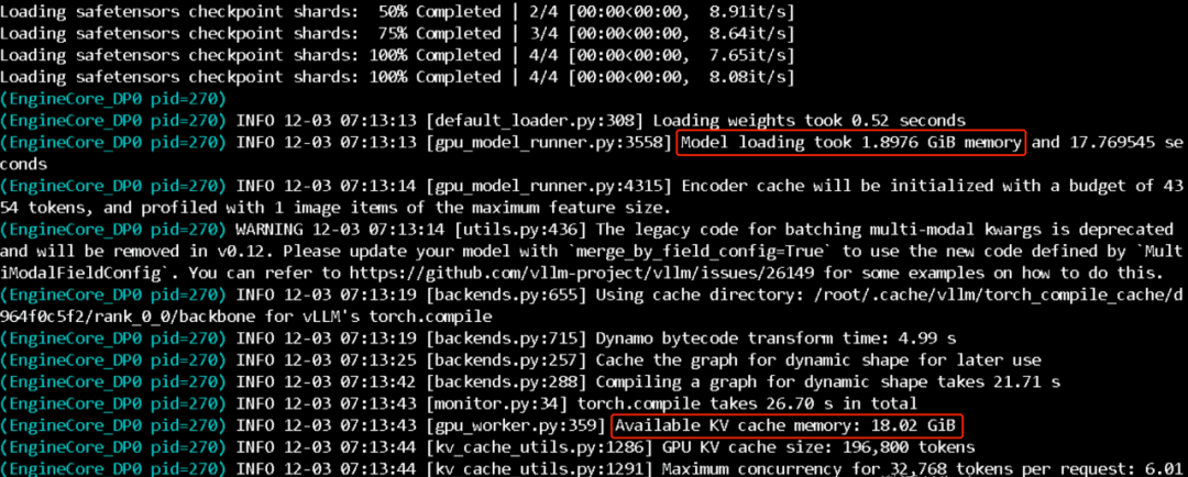 我的显卡是 24GB 的 4090 模型只占 1.9GB,其他都是 KV cache 占用  官方教程中的模型调用貌似也不太友好啊,我还是用了为 DeeoSeekOCR 写的 API,简单修改后依然很好用  速度飞快,5 页的 PDF 也是秒秒钟搞定  回到最开始问题,启动模型加上参数 --gpu-memory-utilization 0.66,也就是 16GB 启动模型,依然是 OK 的  而且速度丝毫没有下降 |