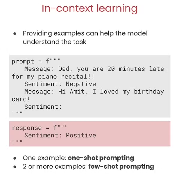 One-shotorfew-shotprompting.Inadditiontoaprompt,givingtheLLMahandfulofexamplesofhowtocarryoutatask—theinputandthedesiredoutput—sometimesyieldsbetterresults.