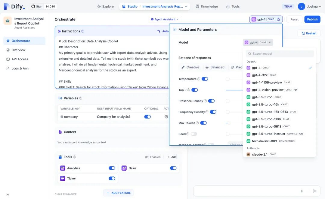 4. 支持多种大语言模型:Dify已支持主流的模型,开发者能够根据自己的需求选择最适合的模型来构建AI应用。