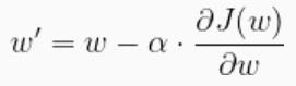 • 学习率:是指导我们该如何通过损失函数的梯度调整网络权重的超参数,通过设置学习率控制参数更新的速度。以下公式,在更新参数 w 时,其中 α 就是学习率。